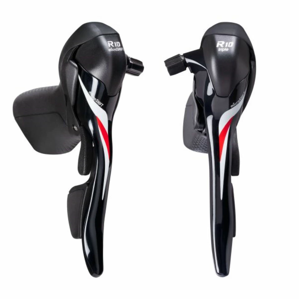 The microSHIFT R10 3×10 Speed Dual Control Lever Set is a 10-Speed dropbar brake and shifter set that's compatible with triple road chainsets.